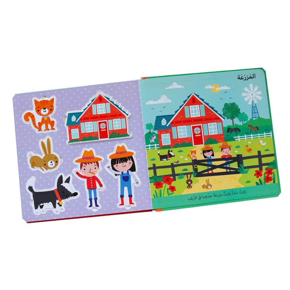 يحتوي هذا الكتابُ التَّفاعليُّ على 33 قطعةً يُمكنُ لِطفلِكَ تجميعُها ووضعُها في أماكِنِها المُناسبةِ وَفْقاً للنَّصِ، مِمَّا يُتيحُ لهُ فُرصةَ ابتكارِ مشاهدَ خياليَّةٍ خاصَّةٍ بهِ.